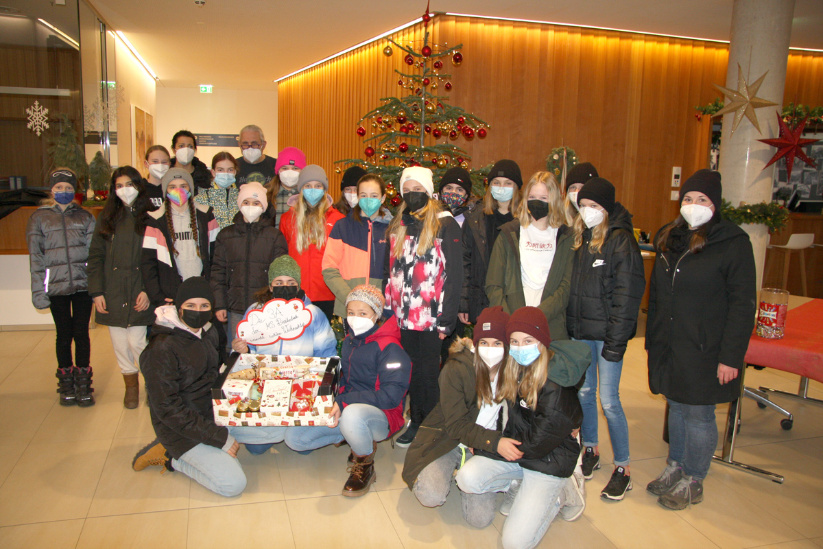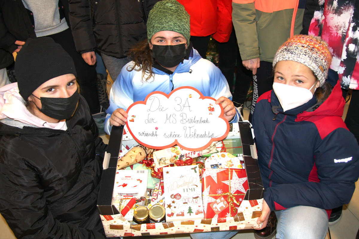 Eine Kiste voll mit vielen Leckereien überbrachte die 3a der MS Breitenbach mit ihrer Lehrerin Diana Keiler.