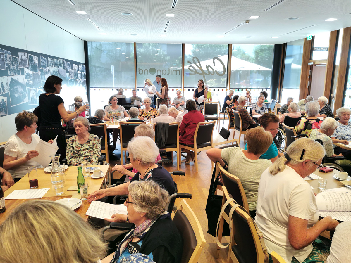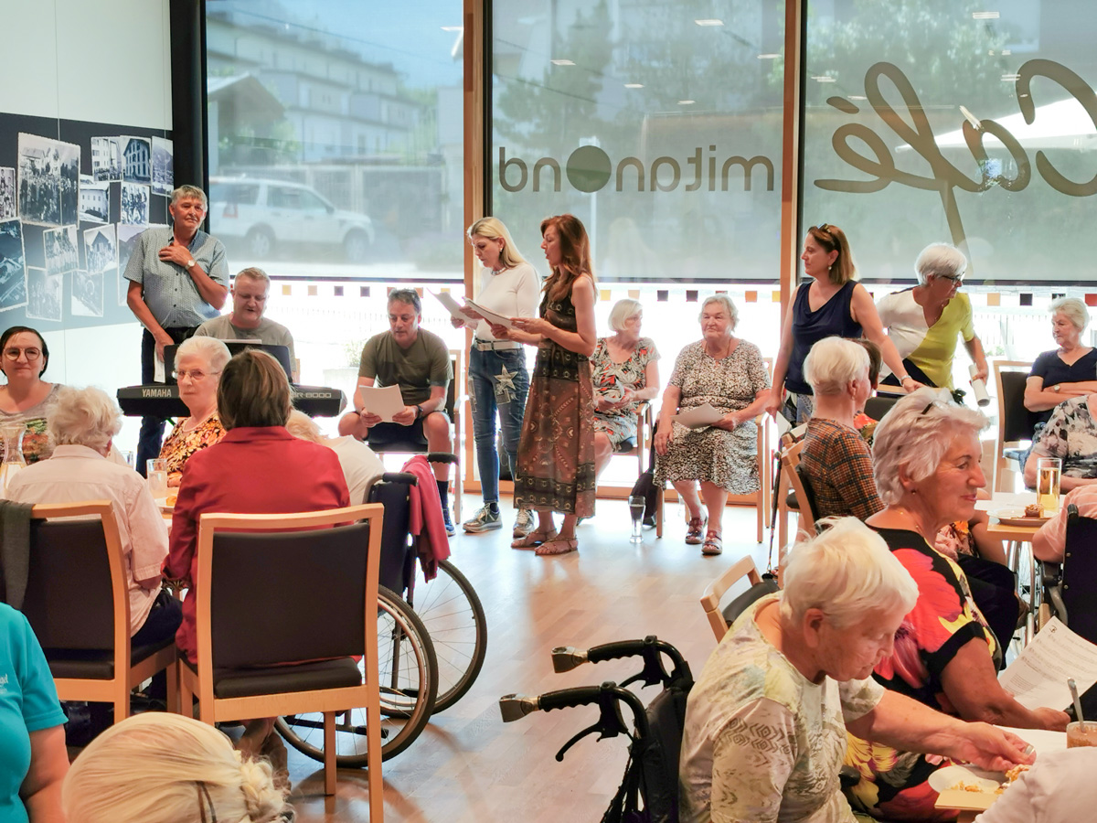 Die BewohnerInnen des Sozialzentrums mitanond, KlientInnen der Tagesbetreuung und viele andere Gäste folgten der Einladung. Es wurde mit viel Freude und Begeisterung mitgesungen, mitgesummt oder mitgeklatscht. Das Motto „Sing mit uns“ war ein voller Erfolg.