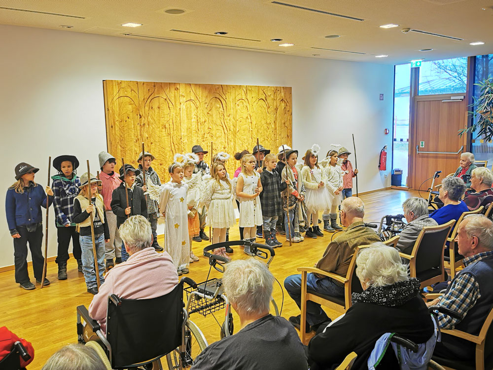 Die Schüler:innen der Volksschule Kundl überbrachten den Bewohner:innen ihre Weihnachtsgrüße mit viel Musik und einem Hirtenspiel.