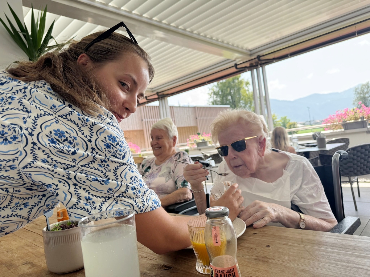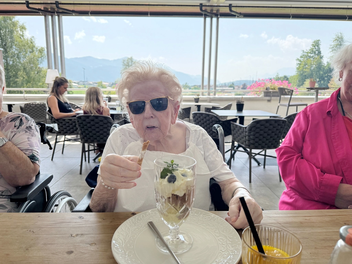 Auch wenn das Wetter perfekt zum Baden gewesen wäre, haben es sich unsere Ausflügler vom Sozialzentrum mitanond lieber auf der sonnigen Terrasse des Strandbades Kirchbichl gemütlich gemacht.