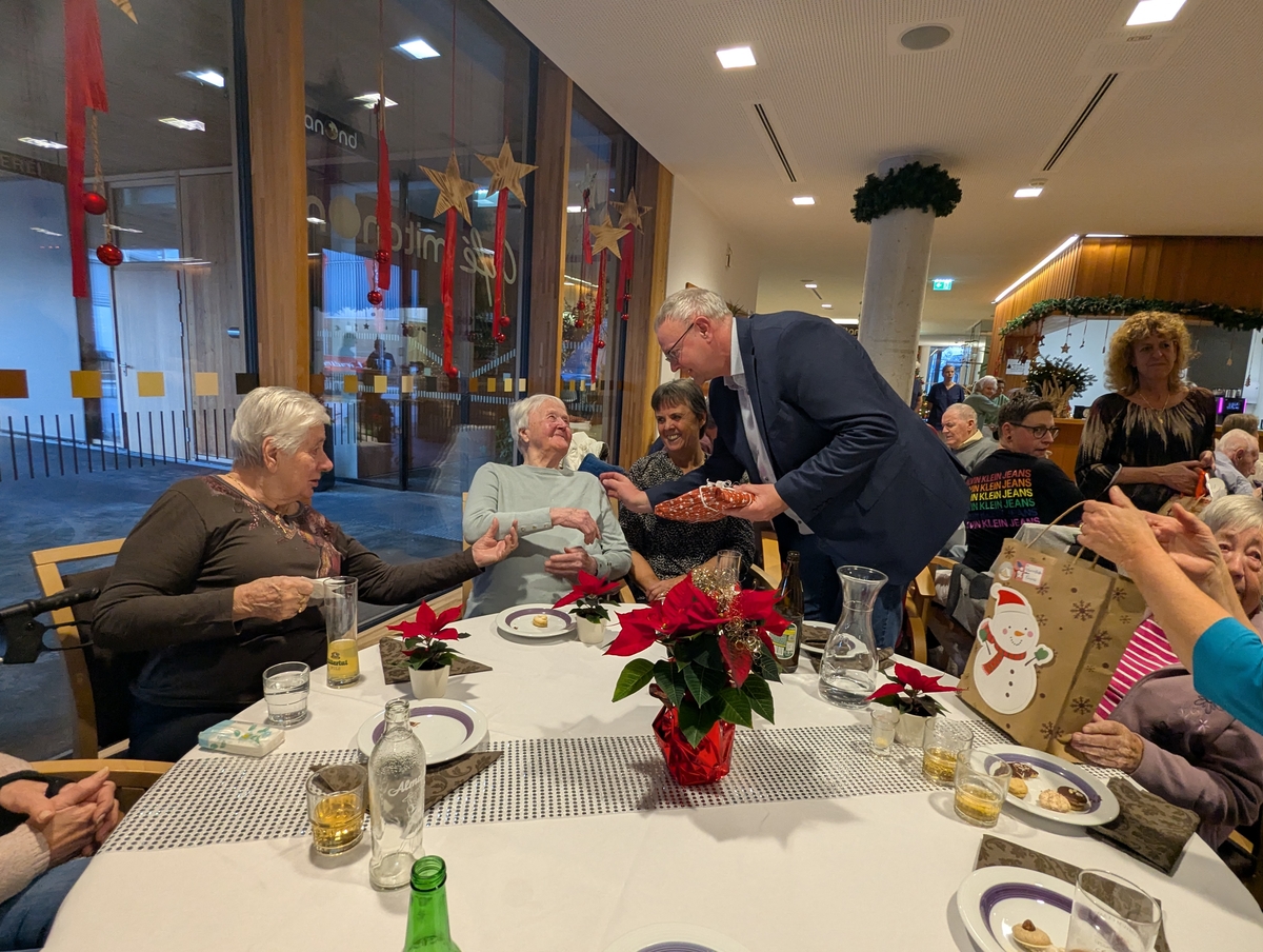 Nicht fehlen durfte natürlich auch die Geschenkverteilung durch die Verbandsbürgermeister Anton Hoflacher und Josef Auer. Für alle Bewohner:innen wurde seitens der Mitarbeiter:innen ein ganz persönliches Weihnachtsgeschenk besorgt.