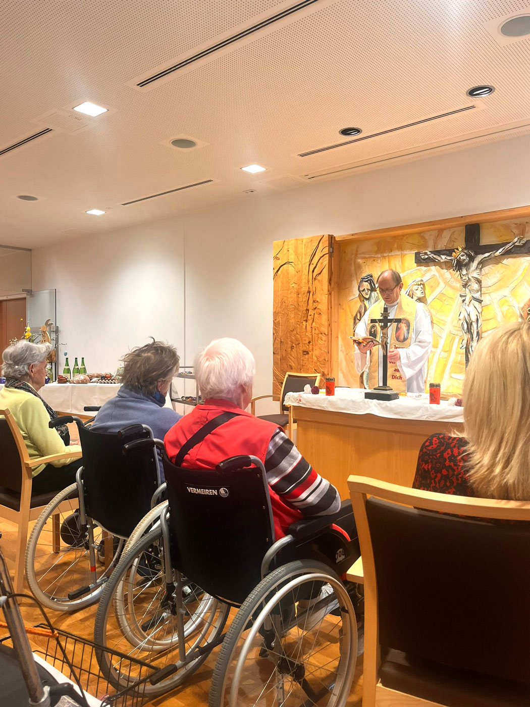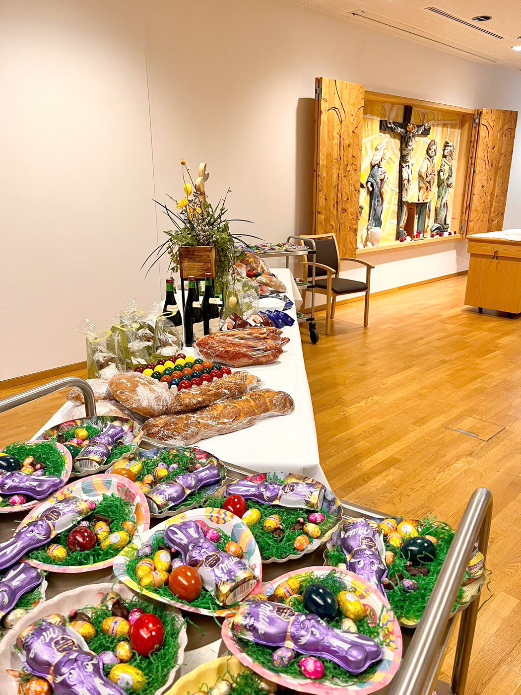 Auch unsere liebevoll vorbereiteten Osternester erhielten den Segen, bevor sie an unsere Bewohnerinnen und Bewohner verteilt wurden.